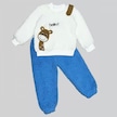 1-2-3 Yaş Hello Zürafa Nakışlı Kuzu Kumaş Sweat Pantolon Uzun Kollu Kız Erkek 2 Li Takımı Saks Mavisi