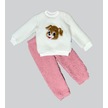 1-2-3 Yaş Mutlu Köpekcik Nakışlı Kuzu Kumaş Sweat Patili Pantolon Uzun Kollu Kız Erkek 2 Li Takımı G Gül Kurusu