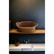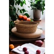 1 Adet Hasır Örgülü Bej Şeritli Organizer & Ekmeklik Hasır