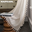 1 Adet Napearl Brokar Pamuk Çözgü Örme Zanaat Perde Püsküller İle Oturma Odası Yatak Odası Ev Dekor İçin W150cm X L240cm Bej
