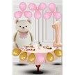 1 Yaş Retro Folyo Krem Ayıcık Pembe Gold Balon Rose Gold Rakam Doğum Günü Süsleme KREM