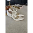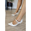 10 1103 Topukla Kadın Bilekden Bağlamalı Kısa Topuklu Sivri Burun Ayakkabı Sedef
