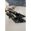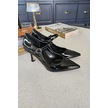 10 1103 Topukla Kadın Bilekden Bağlamalı Kısa Topuklu Sivri Burun Ayakkabı Siyah Rugan