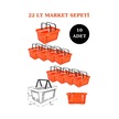 10 adet 22Litre Market ve Alışveriş Sepeti, Saplı Market Sepeti T