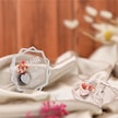 10 Lu Kişiye Özel Akrilik Magnet Nikah Şekeri - Gümüş Detaylı Çiçekli Tasarım
