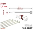 100 Adet 10cmx2.5mm Beyaz Plastik Cırt Kelepçe Kablo Bağı