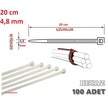 100 Adet 20cmx4,8mm Beyaz Plastik Cırt Kelepçe Kablo Bağı