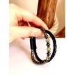 %100 Deri-hematit Kombin Erkek Bileklik Net 21cm Türk El Üretimi Siyah - Gri