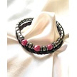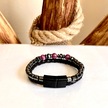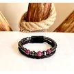 %100 Deri&hematit Kombin Siyah-lila Erkek Bileklik Net 21cm Siyah - Pembe