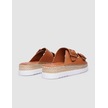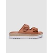 %100 Hakiki Deri Taba Çift Tokalı Kadın Terlik-taba Taba
