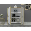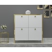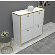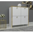 %100 Mdf 2 Kapaklı Küp Altın Sarısı Desenli Gövdeli Ayakkabılık Beyaz