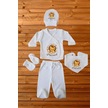 %100 Pamuk Baskılı 5 Li Isimli Organik Bebek Hastane Çıkışı Beyaz