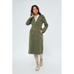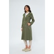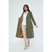 %100 Pamuk Ekstra Uzun 120cm Kruvaze Kadın Trençkot 1121 Haki