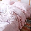 % 100 Pamuk Pembe Fırfırlı Keten Çift Kişilik Nevresim Takımı 200 X220 Pembe