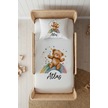 %100 Pamuk Saten İsme Özel İsimli 100x200 Tek Kişilik Lastikli Çarşaf Seti Ayıcık Beyaz