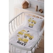 %100 Pamuk Saten Isme Özel Isimli Anne Yanı Beşik Nevresim Takımı Inşaat Arabaları