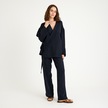 %100 Pamuklu Dokuma İçten Bağlamalı Müslin Kimono-pantolon Alt Üst Takım Siyah