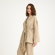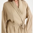 %100 Pamuklu Dokuma Şal Yaka Müslin Kimono-pantolon Alt Üst Takım Bej