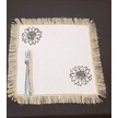 %100 Pamuklu Ham Keten Hasır Püsküllü Ayçiçek Taş Baskılı 6' Li Amerikan Servisi Supla Kare 42 Cm Naturel