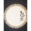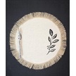 %100 Pamuklu Ham Keten Hasır Püsküllü Yaprak Taş Baskı 6' Lı Amerikan Servisi Supla Yuvarlak 40cm Naturel