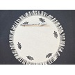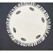 %100 Pamuklu Ham Keten Pamuk Püsküllü Minik Desen Taş Baskı 6' Lı Amerikan Servisi Supla Yuvarlak 40cm Naturel
