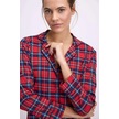 %100 Pamuklu Uzun Kol Düğmeli Gömlek Ve Ekose Pantolon Pijama Takımı Bordo