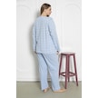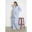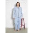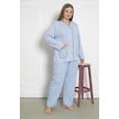 %100 Pamuklu Uzun Kollu Boydan Düğmeli Büyük Beden Kadın Pijama Takımı 206 Mavi