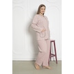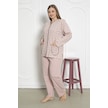 %100 Pamuklu Uzun Kollu Boydan Düğmeli Büyük Beden Kadın Pijama Takımı 206 Pudra