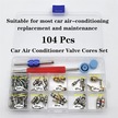 104 Adet Araba Klima Vanası Çekirdek Çeşitleri A/c Ac Shrader Vana Çekirdek Ve Aracı R134 R12 Hvac Vanalar Kiti Yedek Parçalar