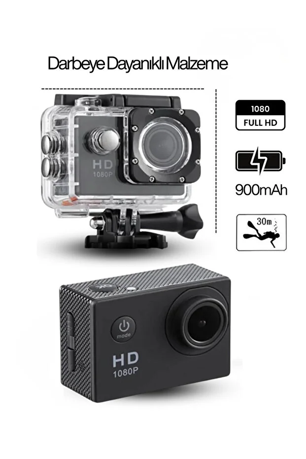 1080p Su Geçirmez Aksiyon Kamerası Maceralarınızı Ölümsüzleştirin - Sd Kart Hedıyelı Siyah