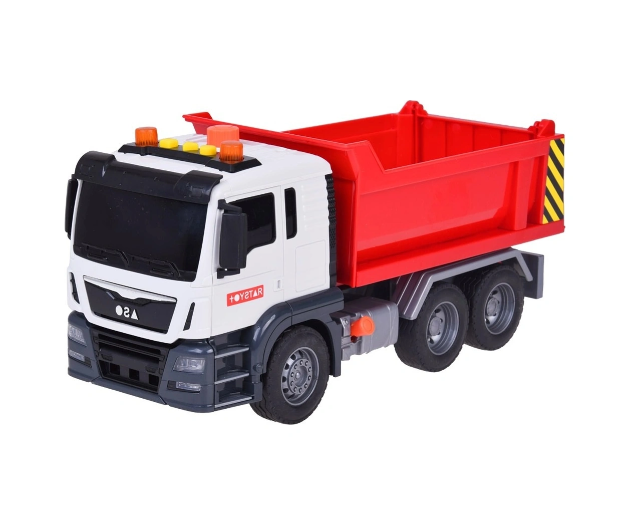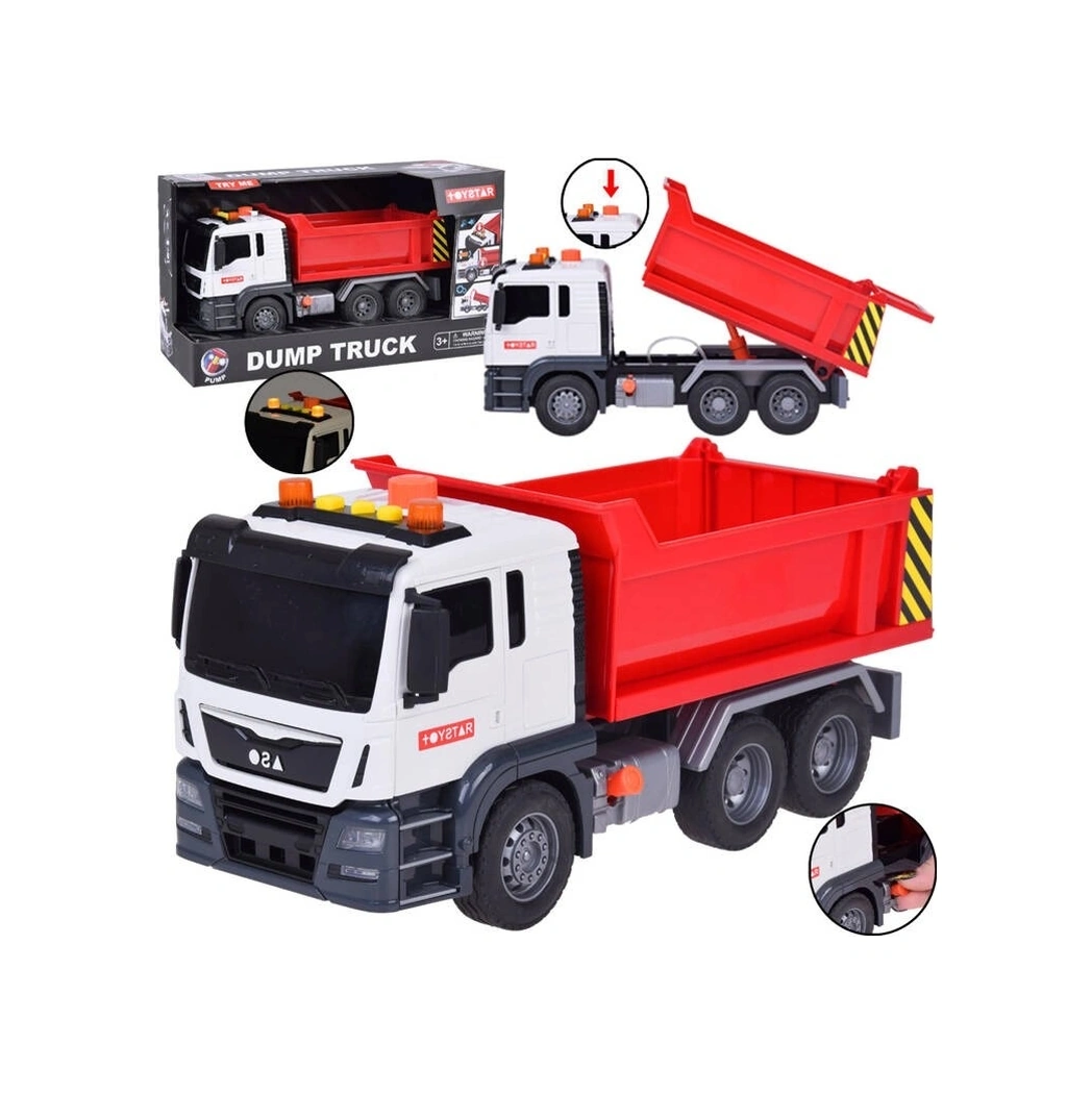 1:12 Sürtmeli Sesli Işıklı Kırmızı Damperli Oyuncak Kamyon