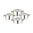 1137-g - 8 Parça, İndüksiyonlu 1. Sınıf Paslanmaz Çelik Tencere Seti, Gümüş Gövde, Gold Detay Gold - Gümüş