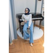1166-parçalı Denim Bol Paça Pantolon Mavi Mavi