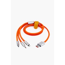 120w 3 İn 1 Süper Hızlı Şarj Kablosu , Iphone , Xiaomi , Huawei Uyumlu Silikon Şarj Kablosu