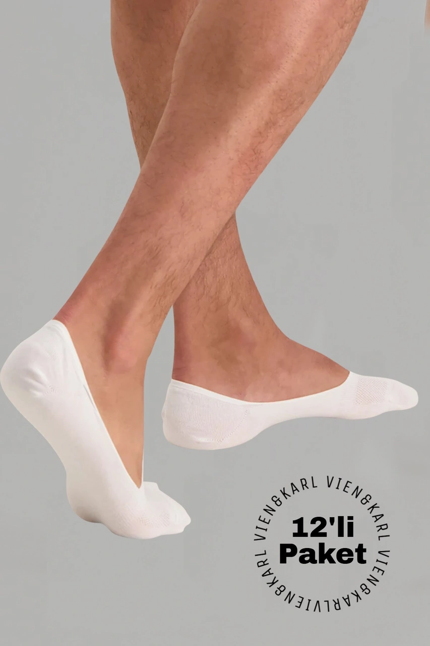 12'li Premium Erkek Beyaz Babet Çorap Vk-erkek-beyaz-babet12li