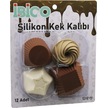 12pcs Renkli Silikon Muffin - Kek Kalıp Mix Şekil 3-dikdörtgen - 3-yuvarlak - 3-rüzgar Gülü - 3- Çok Renkli