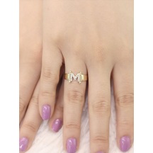 14 Ayar Altın Küçük M Harfli Taşlı Yüzük
