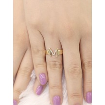 14 Ayar Altın Küçük V Harfli Taşlı Yüzük