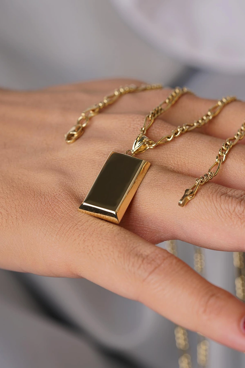 14 Ayar Altın Külçeli Figaro Zincir Kolye Sarı Altın