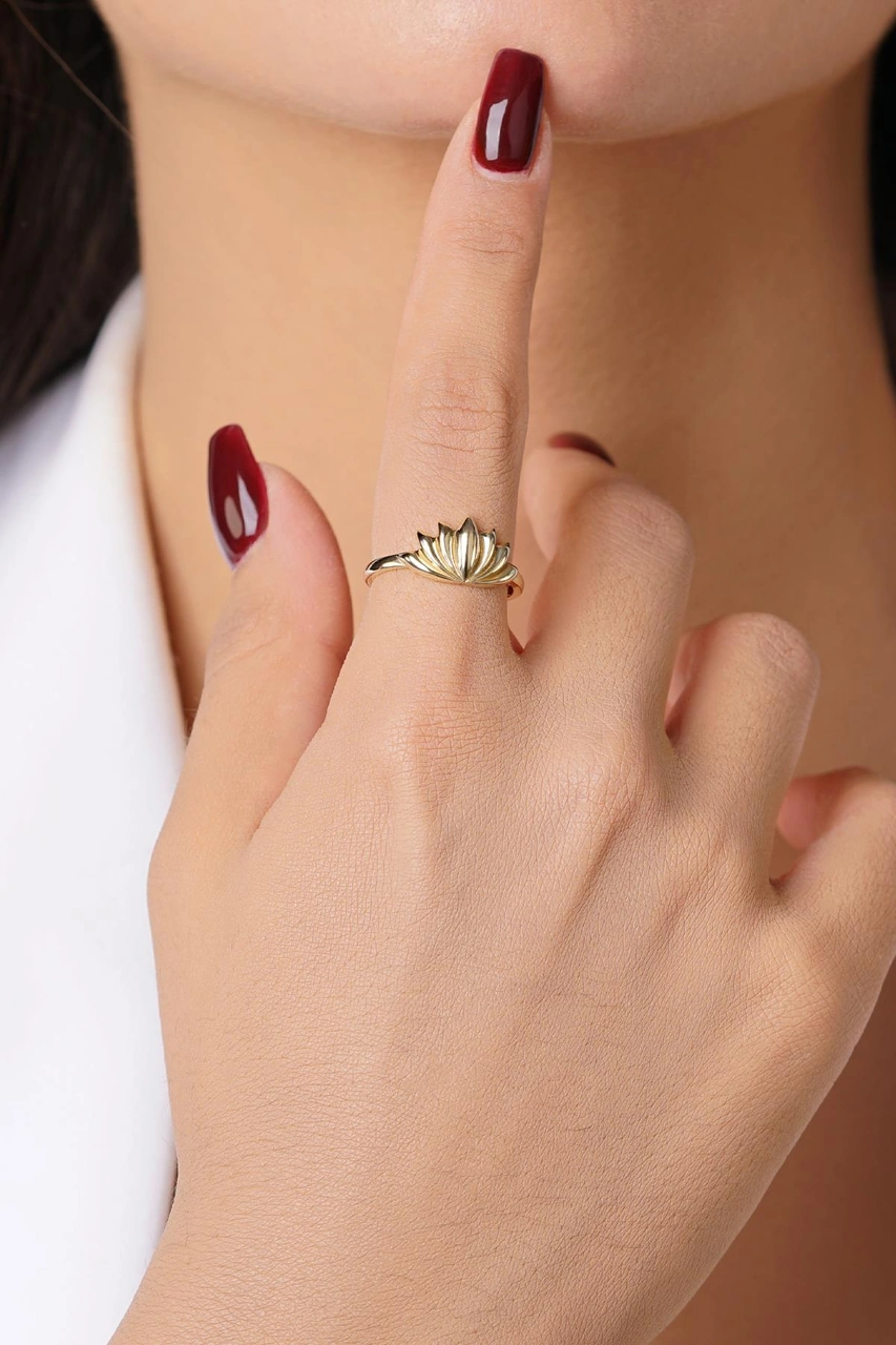 14 Ayar Altın Lotus Çiçeği Yüzük Yzk6752 Sarı Altın