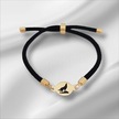14 Ayar Altın Plakalı Oval Motifli İpek Örgülü Bozkurt Sembollü Hediye Bileklik-320sembol-siyah Altın