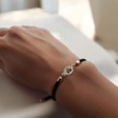 14 Ayar Altın Plakalı Oval Motifli İpek Örgülü Hz Ali Sembollü Hediye Bileklik-320sembol-siyah Altın