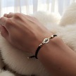 14 Ayar Altın Plakalı Oval Motifli İpek Örgülü Kraliçe Sembollü Hediye Bileklik-320sembol-siyah Altın