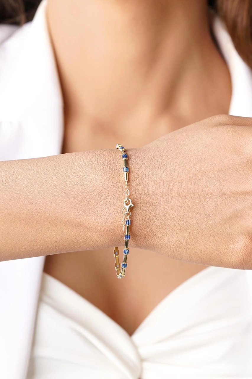 14 Ayar Altın Safir Taşlı Modern Bileklik Pembe Altın