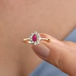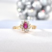14 Ayar Mikron Altın Kaplama Kırmızı Taşlı Damla Halo Yüzük Vintage Still - Rs00118 Altın