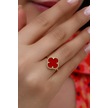 14k Altın Kaplamalı 925 Ayar Gümüş Granada Saray Yoncası Yüzük - Kırmızı 34025201 Altın