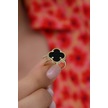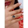 14k Altın Kaplamalı 925 Ayar Gümüş Granada Saray Yoncası Yüzük - Siyah Oniks 34025202 Altın