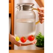 1500 Ml Borosilikat Cam Çizgili Sürahi Süzgeçli Metal Kapaklı, Isıya Dayanıklı Şık Tasarım