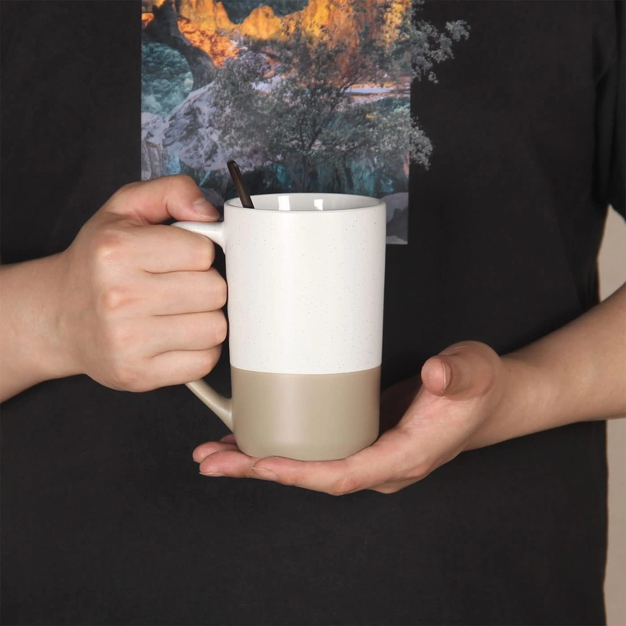 16 Oz Büyük Kahve Kupası, İki Renk Kombinasyonu Büyük Seramik Çay Bardağı Diğer