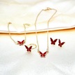 1set Moda Zarif Basit Çok Yönlü Kelebek Kolye Bilezik Küpe Yüzük Kadınlar Kızlar Düğün Partisi Takı Seti Hediye Kırmızı